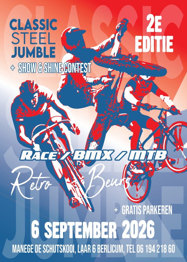 Wilt U als aanbieder deelnemen aan de 2e Classic Steel Jumble Beurs ? Voor de beurs zoeken we deelnemers die graag hun klassieke RACEFIETSEN, BMX fietsen en MTB fietsen of onderdelen hiervoor willen aanbieden.